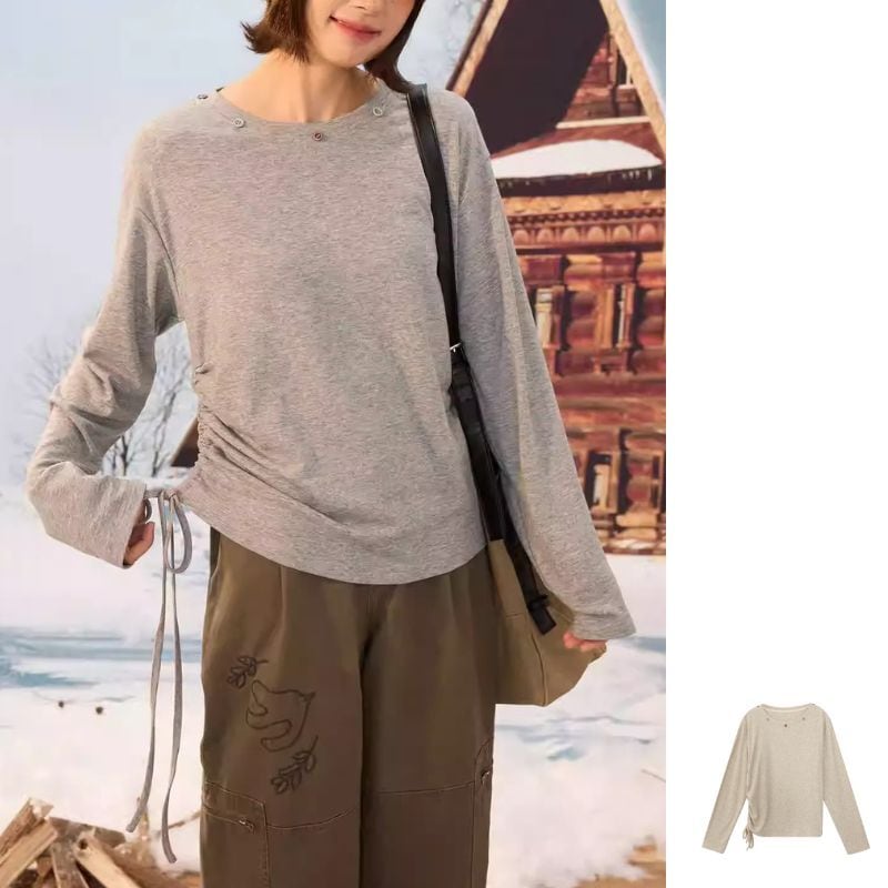 シンプルなデザインでコーデを選ばないトップス♪ サイドギャザーデザインが今っぽい★ こちらの商品に合うパンツは下記URLから↓★ https://www.monoqlo-plus.com/items/125146670 【商品仕様】 ●性別 :Unisex ●カラー :Gray / Apricot ●サイズ :S / M / L 〔S〕:肩幅46.5cm / 胸囲92cm / 着丈56.5cm / 袖丈55cm 〔M〕:肩幅48cm / 胸囲96cm / 着丈58cm / 袖丈56cm 〔L〕:肩幅49.5cm / 胸囲100cm / 着丈59.5cm / 袖丈57cm ※サイズ・重量など多少の誤差があります。 ※モデル:身長160cm・体重45㎏・試着M ------------------------------------------------------------- ■■TOPページはこちらから■■ https://www.monoqlo-plus.com/ ■■monoqlo+ おすすめ商品はこちらから■■ https://www.monoqlo-plus.com/categories/2935226 ■■トップスに合うアウターをご覧になりたい方はこちらから■■ https://www.monoqlo-plus.com/categories/2989041 ■■トップスに合うパンツをご覧になりたい方はこちらから■■ https://www.monoqlo-plus.com/categories/2989056 ------------------------------------------------------------- ■■選べるお支払い方法■■ *クレジットカード決済 (手数料無料・オススメ!) *キャリア決済 docomo/au/Softbank/Y!mobile (手数料300円) *後払い決済 (手数料300円) ------------------------------------------------------------- ■注意事項 ・タイミングによっては 商品在庫切れにより 注文キャンセルとさせていただく恐れもございますので、予めご了承くださいませ。 ・こちらは輸入品となります。日本製とは検品基準が異なる為、サイズやタグの位置など多少の誤差がある場合もございます。 ・商品の色味は、お手持ちのスマートフォンの画面によって実物と若干異なる場合がございます。 ・イメージ違いやサイズ交換、配送の遅延等での返品・キャンセルは対応出来かねます。 ■□■□■□■□■□■□■□■□■□■□■□■□■ 【配送期間について】 こちらの商品は海外店舗より直接発送となる為、ご入金から2週間ー4週間前後で商品到着致します。 ※発送通知メールが送られるまでに1週間ー3週間程度かかります。 ※発送通知が送られるまでは、ステータスは【発送準備中】から変化いたしませんので予めご了承ください。 詳しい配送期間・返品事項などが記載されておりますので、初めてご購入の方は必ずお読みください。↓↓↓ https://www.monoqlo-plus.com/about ■□■□■□■□■□■□■□■□■□■□■□■□■