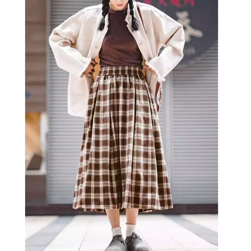 レトロライクなチェック柄スカートでガーリーに♪