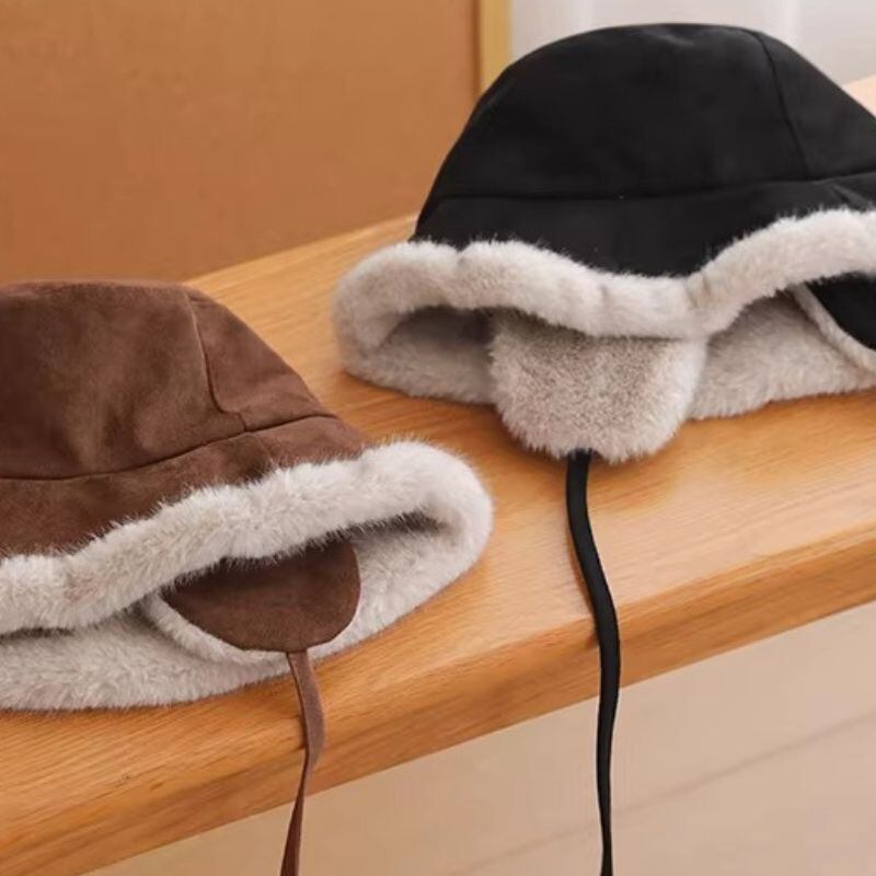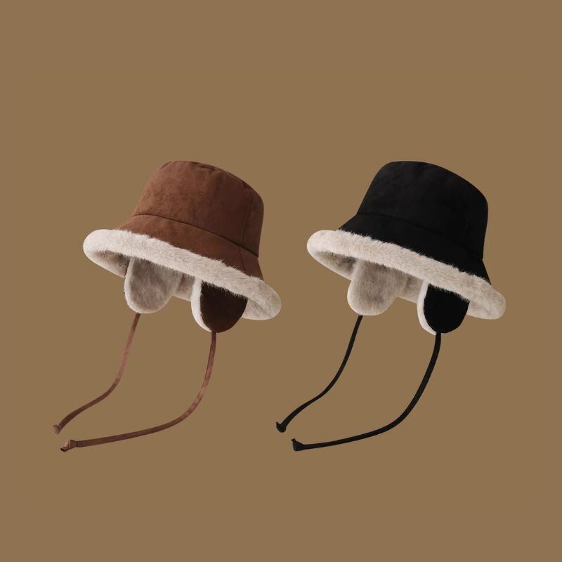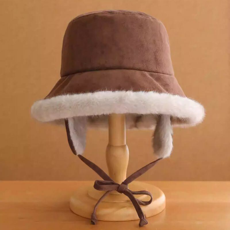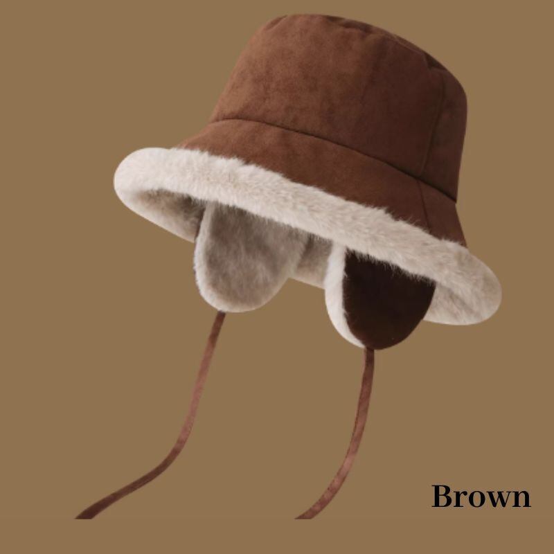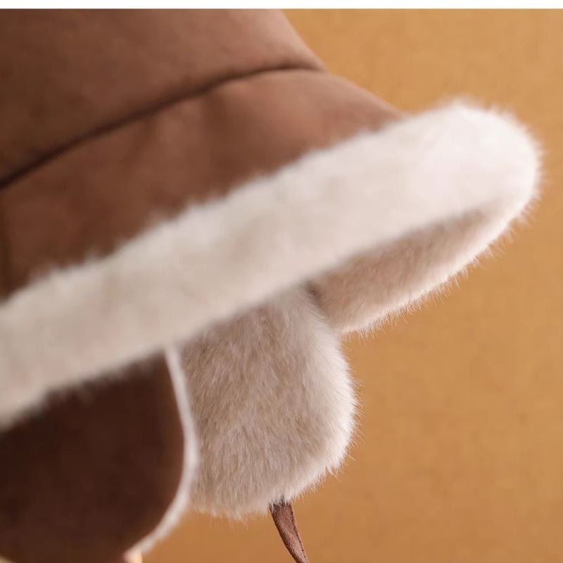耳当て付きのお洒落なこなれファーバケットハット♪