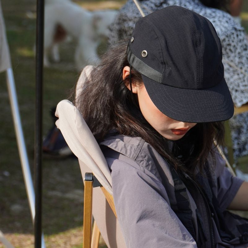 ポリエステル生地で乾きやすく、アウトドアシーンに◎