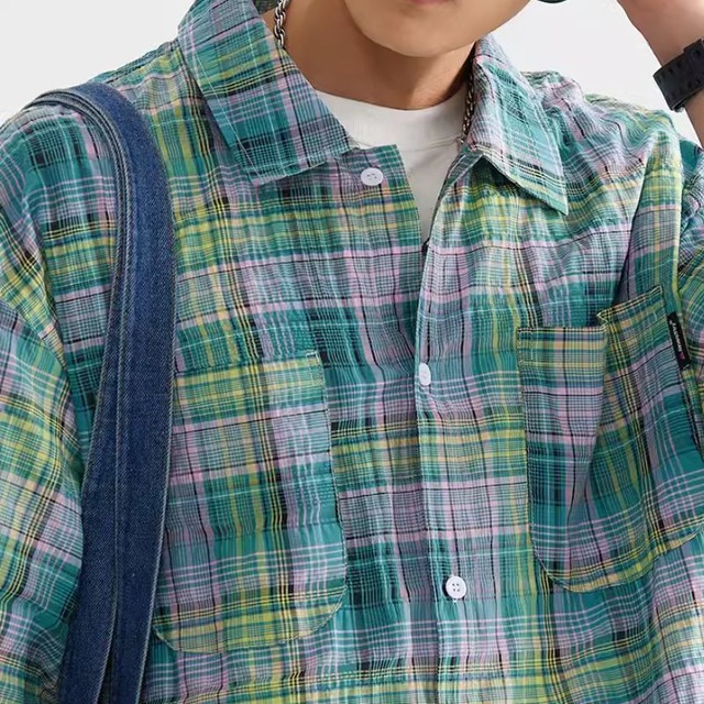 爽やかなチェック柄シャツ。