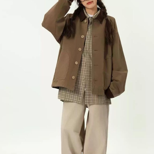 レトロカジュアルな大人シルエット♪ 落ち着いたカラーで着こなしやすい◎ こちらの商品に合うスカートは下記URLから↓★ https://www.monoqlo-plus.com/items/92061009 【商品仕様】 ●性別 :Unisex ●カラー :Khaki / Green ●サイズ :M / L / XL / 2XL 〔M〕:肩幅56cm / 胸囲118m / 着丈65cm / 袖丈57cm 〔L〕:肩幅57cm / 胸囲122cm / 着丈67cm / 袖丈59cm 〔XL〕:肩幅58cm / 胸囲126cm / 着丈69cm / 袖丈61cm 〔2XL〕:肩幅59cm / 胸囲130cm / 着丈71cm / 袖丈63cm ●素材:綿素材 ※サイズ・重量など多少の誤差があります。 ※モデル:身長160cm・体重41㎏・試着M ------------------------------------------------------------- ■■TOPページはこちらから■■ https://www.monoqlo-plus.com/ ■■monoqlo+ おすすめ商品はこちらから■■ https://www.monoqlo-plus.com/categories/2935226 ■■アウターに合うトップスをご覧になりたい方はこちらから■■ https://www.monoqlo-plus.com/categories/3135094 ■■アウターに合うパンツをご覧になりたい方はこちらから■■ https://www.monoqlo-plus.com/categories/2989056 ------------------------------------------------------------- ■■選べるお支払い方法■■ *クレジットカード決済 (手数料無料・オススメ!) *キャリア決済 docomo/au/Softbank/Y!mobile (手数料300円) *後払い決済 (手数料300円) ------------------------------------------------------------- ■注意事項 ・タイミングによっては 商品在庫切れにより 注文キャンセルとさせていただく恐れもございますので、予めご了承くださいませ。 ・こちらは輸入品となります。日本製とは検品基準が異なる為、サイズやタグの位置など多少の誤差がある場合もございます。 ・商品の色味は、お手持ちのスマートフォンの画面によって実物と若干異なる場合がございます。 ・イメージ違いやサイズ交換、配送の遅延等での返品・キャンセルは対応出来かねます。 ■□■□■□■□■□■□■□■□■□■□■□■□■ 【配送期間について】 こちらの商品は海外店舗より直接発送となる為、ご入金から2週間ー4週間前後で商品到着致します。 ※発送通知メールが送られるまでに1週間ー3週間程度かかります。 ※発送通知が送られるまでは、ステータスは【発送準備中】から変化いたしませんので予めご了承ください。 詳しい配送期間・返品事項などが記載されておりますので、初めてご購入の方は必ずお読みください。↓↓↓ https://www.monoqlo-plus.com/about ■□■□■□■□■□■□■□■□■□■□■□■□■