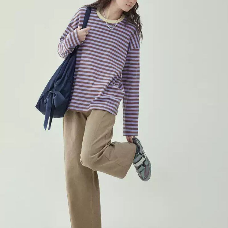 差し色になるボーダートップスで華やかコーデ♪
